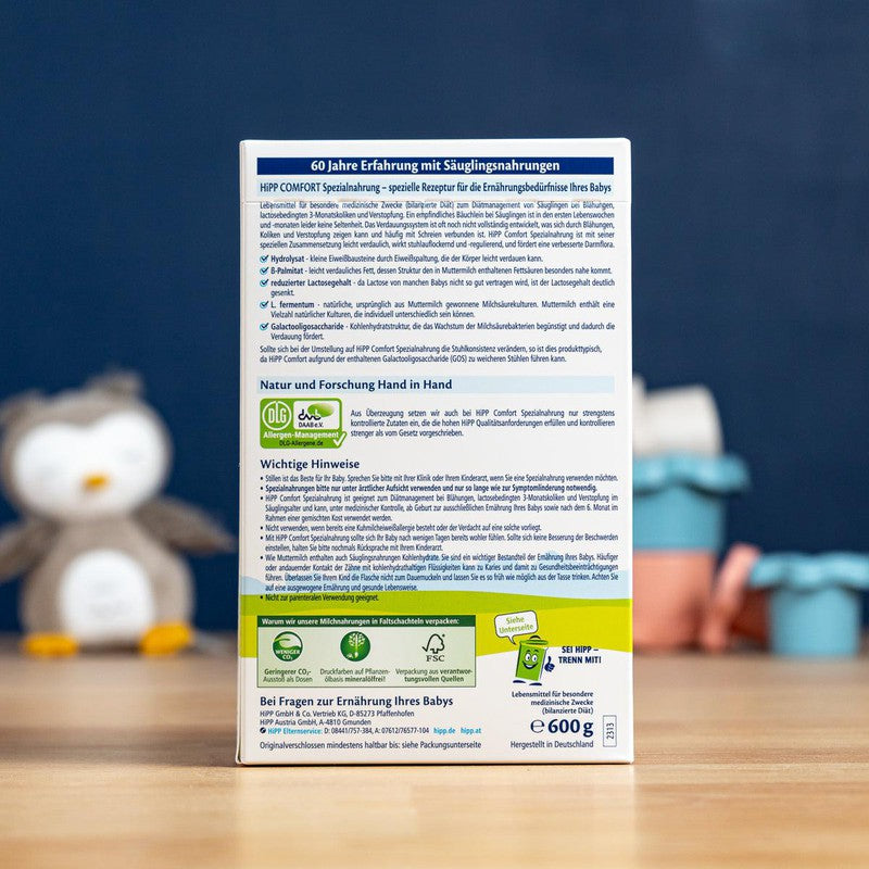 Breastfeeding is best for your baby. Please talk to your clinic or pediatrician before offering your baby infant formula. HiPP Comfort is a special formula that should only be used under medical supervision.